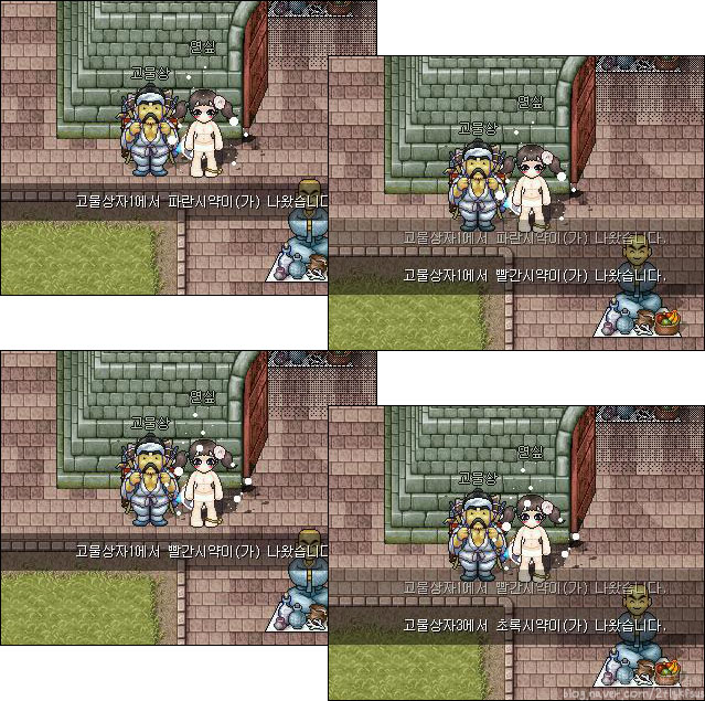 고물상자에서는 남명예, 시약, 재생물약, 흑령류, 황금투구 또는 태닝 등을 얻을 수 있다고 해요.