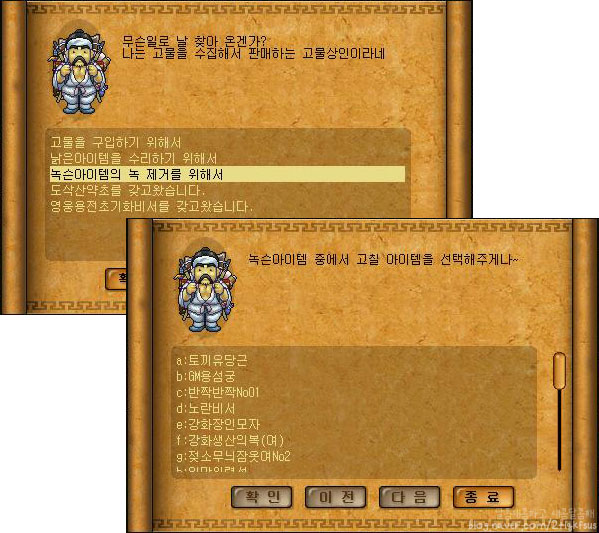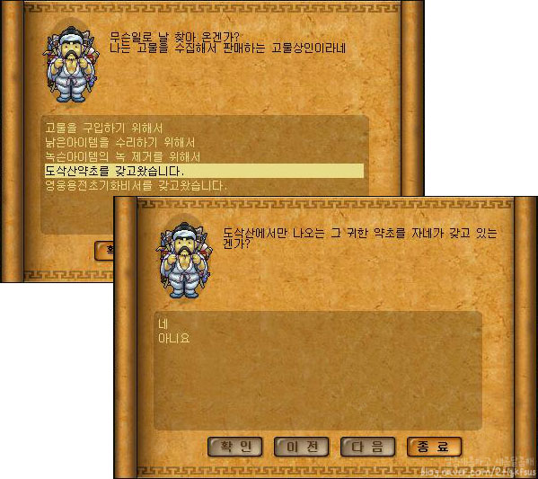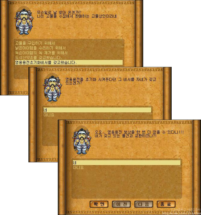 영웅용전비서를 가지고 고물상을 다시 찾아주시구요.