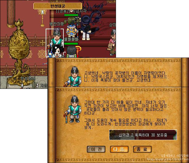 한성병사를 통해 내궁으로 바로 이동합시다:D