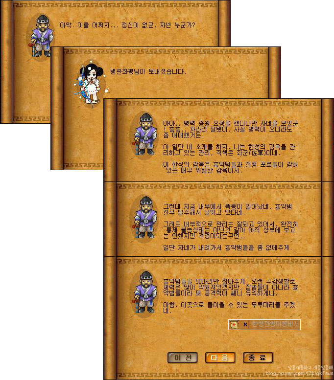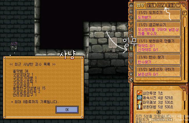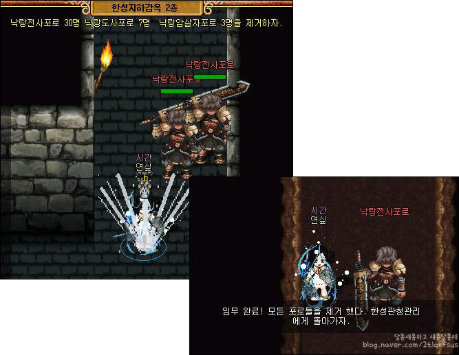 낙랑전사포로30, 도사포로7, 암살자포로3명을 모두 잡으면 임무가 완료됩니다.