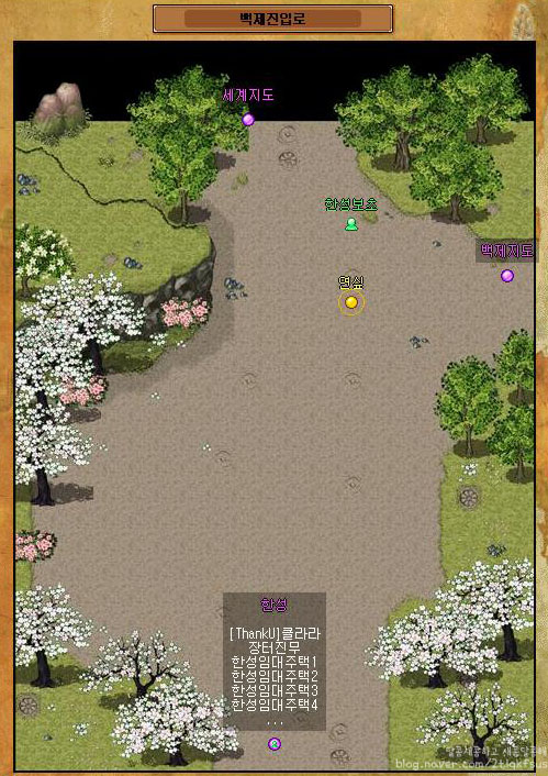 한성에 도착하셔서 백제진입로에서 아래로 쭉 가주세요~