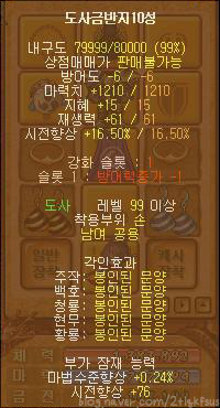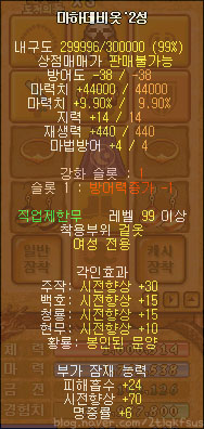 백만위령선은 교환불가 아이템이구요. 무기의 기본 옵션에 시전향상 11%가 포함되어 있어요.