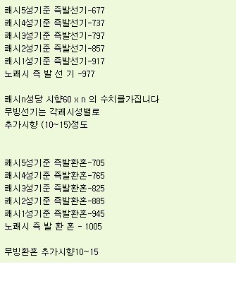 <쾌시1~5성에 따른 즉발, 무빙선기&환혼 기준>