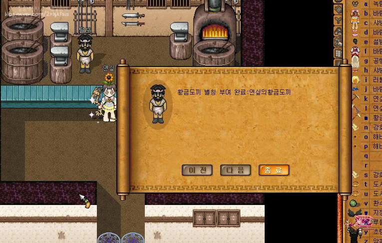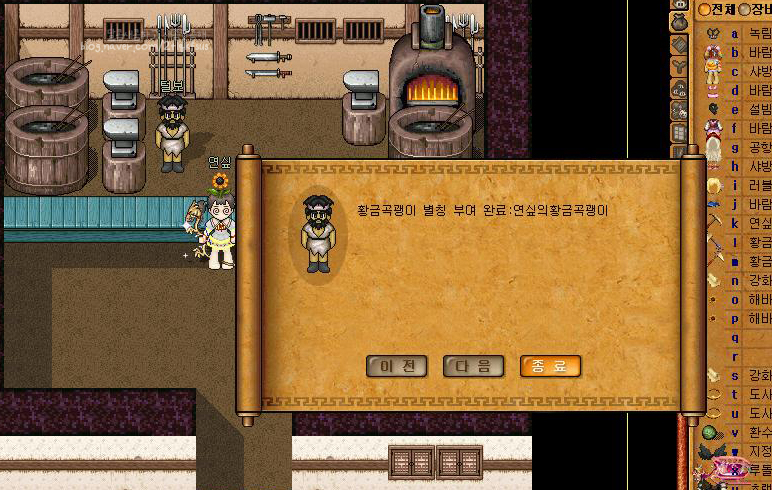 또 다른 방법으로 털보&떡쇠 등의 대장장이를 클릭하셔서 무기 별칭을 바꾸실 수 있어요.