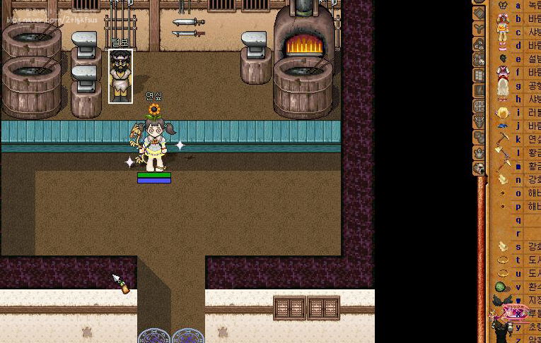 대장간 안에서 "명명"이라고 외치면 오른쪽처럼 창이 하나 떠요.