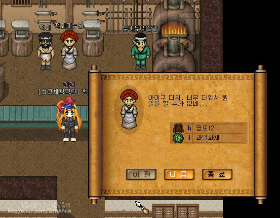재봉사의 집에서 만든 번호망또와 과일화채를 가지고 대장장이의마누라(캡처에서 떡쇠마누라)를 클릭해 주세요.