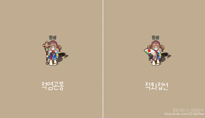 도사 1차 일본전설무기인 적화접선, 도사 2차 전설무기인 적염곤봉 비교 분석이에요.