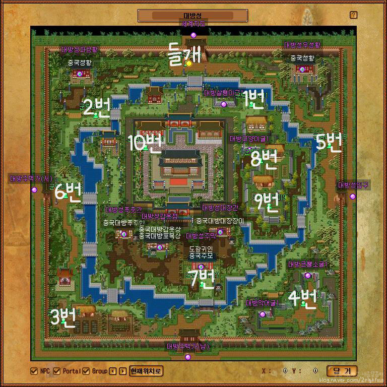 1~10번의 군량미가 군데군데 위치하고 있어요.