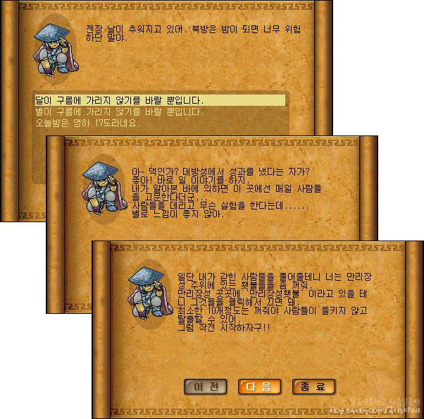 대방성 비영사천문 북에서 바로 보이는 들개npc 클릭!