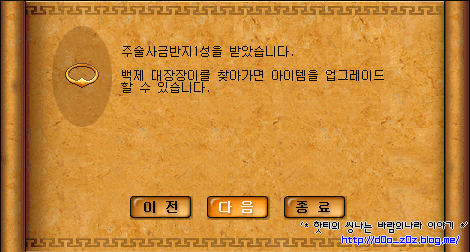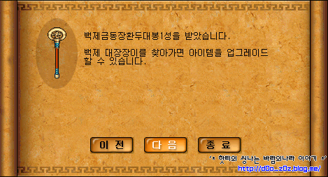 백제장군과 대화가끝난후 백제금동장환두대*1성을 받습니다~