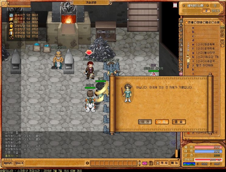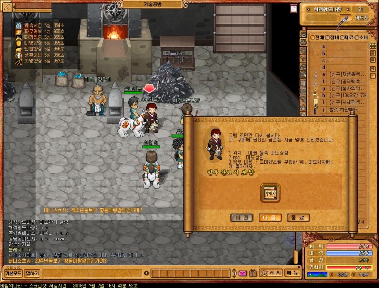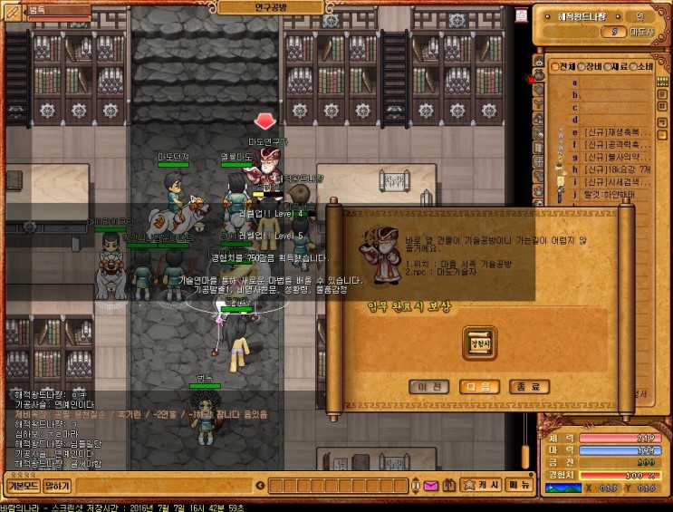 마도 연구가를 만나면 퀘스트가 시작되며, 역시나 바람의나라 퀘스트이 특징인