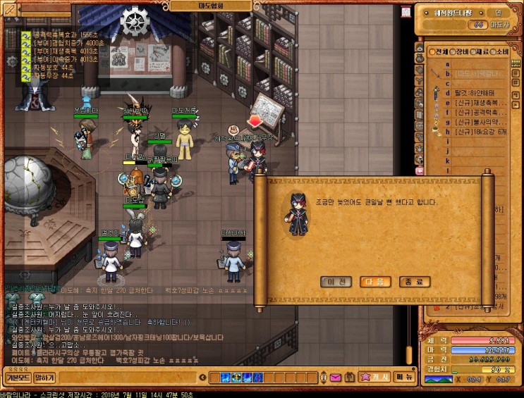 마도사무장(넥슨의하수인NPC) : 왜 그리 놀라세요?? 바람의나라 졎망 개노가다퀘스트의 연속인걸 이제 아셨나요? ㅎㅎㅋ