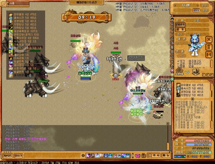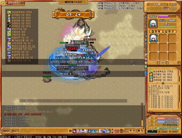 그리고 천선의보호라는 버프마법 (체 20만 , 마 20만 , 피흡 100) 이라는거 생겼는데 보스레이드할때 쓸만할듯 (쿨탐이 길어 일반사냥엔 쓸모x)