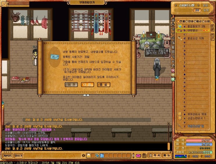 [4]캐시샵에서 사둔 내방등록권30일 (2000원)  + 황금요강 1개(600원) 을 구입하도록 한다