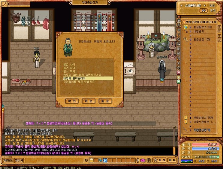 [4]캐시샵에서 사둔 내방등록권30일 (2000원)  + 황금요강 1개(600원) 을 구입하도록 한다
