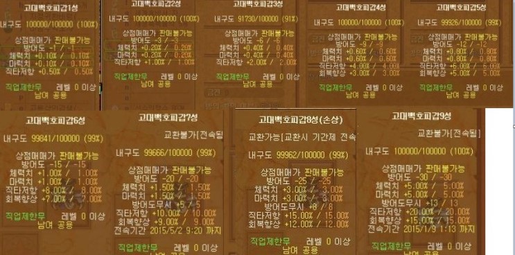 [6]신수장비 갑옷 스크린샷 : 모든신수의 능력치는 같다 (주작/백호/청룡/현무)