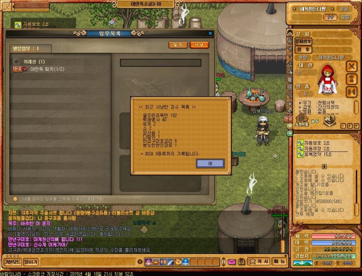 바람의나라 백제퀘스트② (백제대련장/유목민100마리/털보의 lovestory) 종료