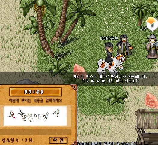 또 매크로 탐지기가 떴다. 금전주는 퀘는 다 있는모양이다.