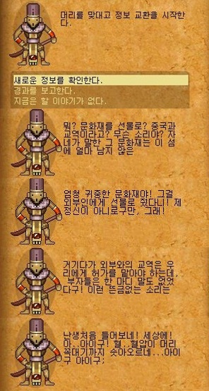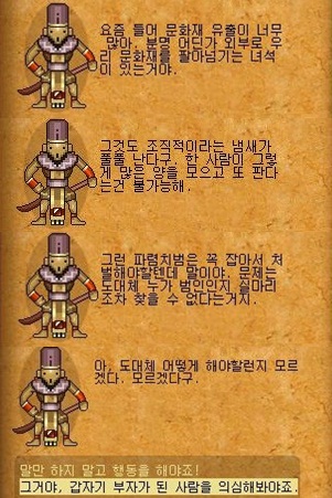 매국노들이 외부로 문화재유출을 해서 걱정이지만 범인이 누군지 실마리조차 못찾고 있다.
