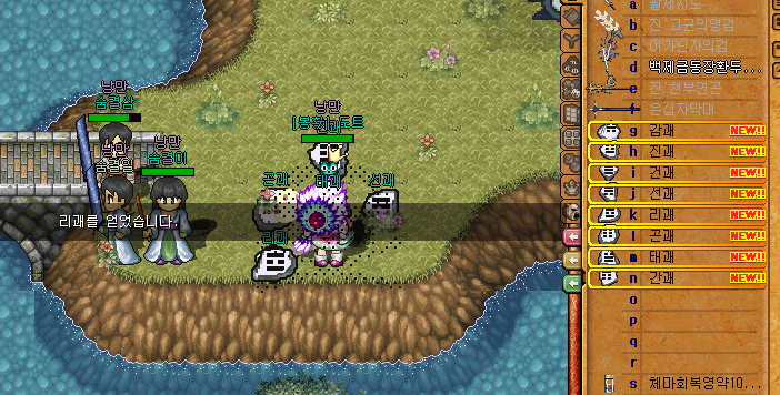 1차 승급 퀘스트 항목을 보시면 12지신의 각종 보스를 잡을 때 그룹원중 승급대상자(지존캐릭)이 있을 경우 아이템창에 괘가 지급된다.