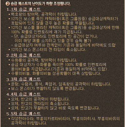 2010년 12월 8일 10.37 클라이언트 패치가 되면서 승급퀘스트 하향이 이루어졌다.