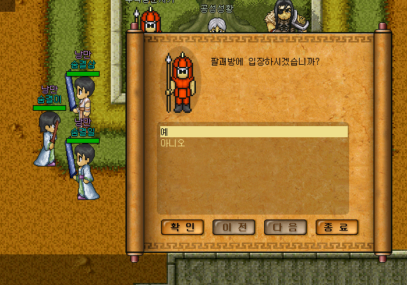 1. 입성문파 및 그 동맹문파 소속 (팔괘방을 이용하기 위해서)