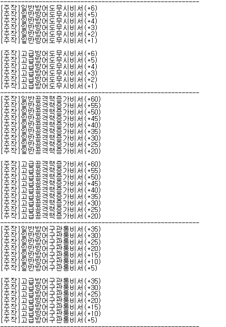 ex)공격력증가+40, 공격력증가+30, 방어도무시+4, 방어도무시+3 이런거만 하셈