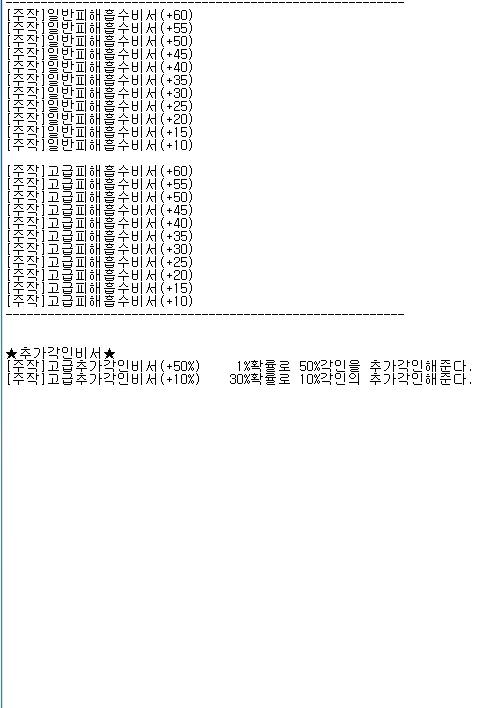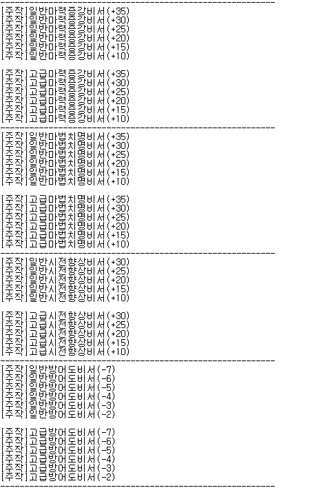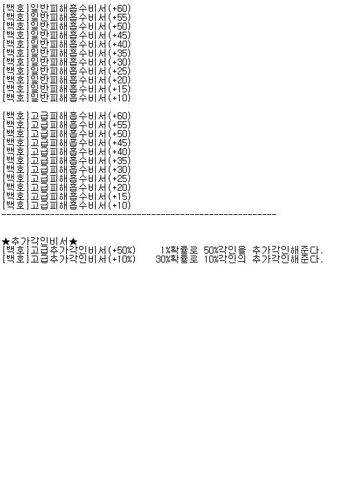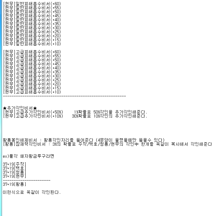 일반비서 : 사냥터에서 드랍되는 주작상자,백호상자,청룡상자,현무상자에서 나오는각인비서. 고급비서보다 성공률은 낮은듯 싶다