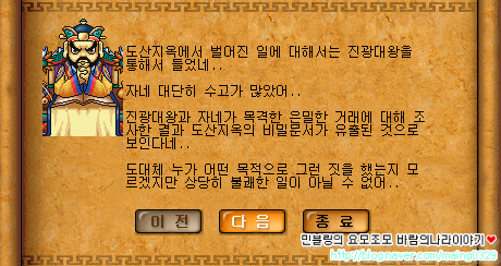 위에 잡소리 집어치우고 ㅋㅋㅋㅋ ' 염라대왕 방 ' 으로 와주셔서