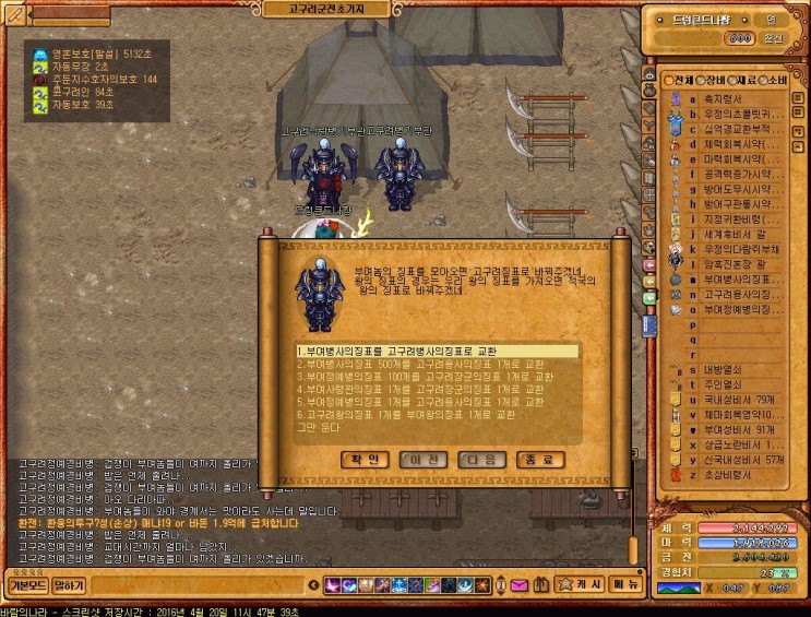 [3]뭘 얻음? : 고구려용사의징표2개 or  부여정예병의징표 2개