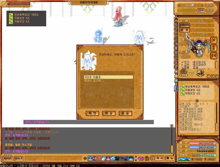 이곳을 들어가면 인스턴트 던젼인 구미호던젼 & 전우치던젼이 나옴