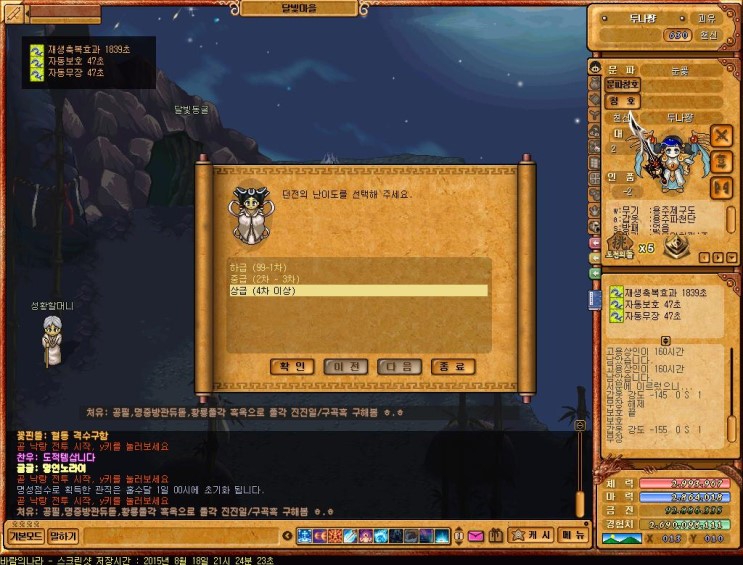 하급/ 중급 / 상급 자신의 바람의나라 레벨과 맞는 사냥터로 입장이 가능함