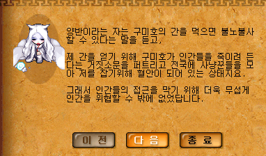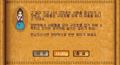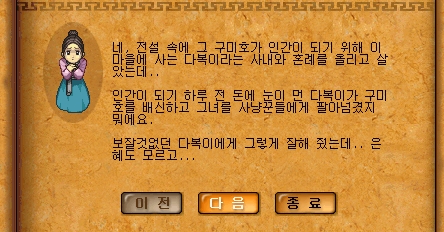 구미호는 npc들한테 대화를 걸지않고 진행하려고 할 시에