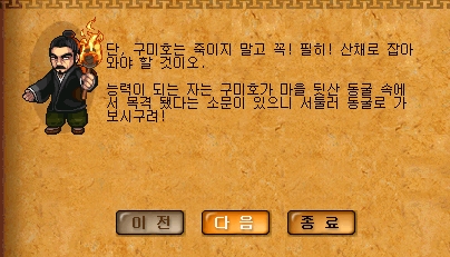 이제 마을사람들을 괴롭히는 악당 구미호를 잡으러 갑시다.