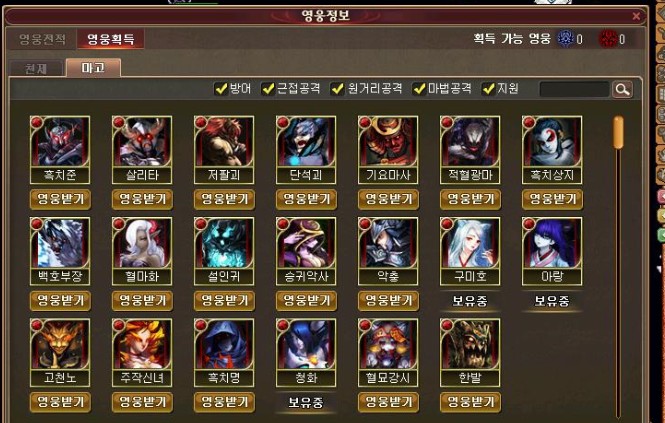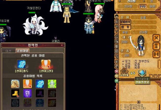 [3]S창에 있는 "천마전정보"를 누르면 공용마법을 고를 수 있다