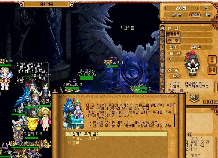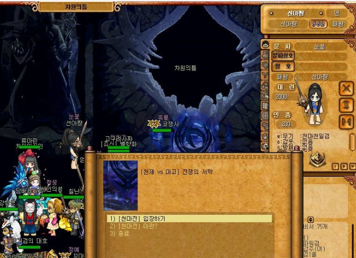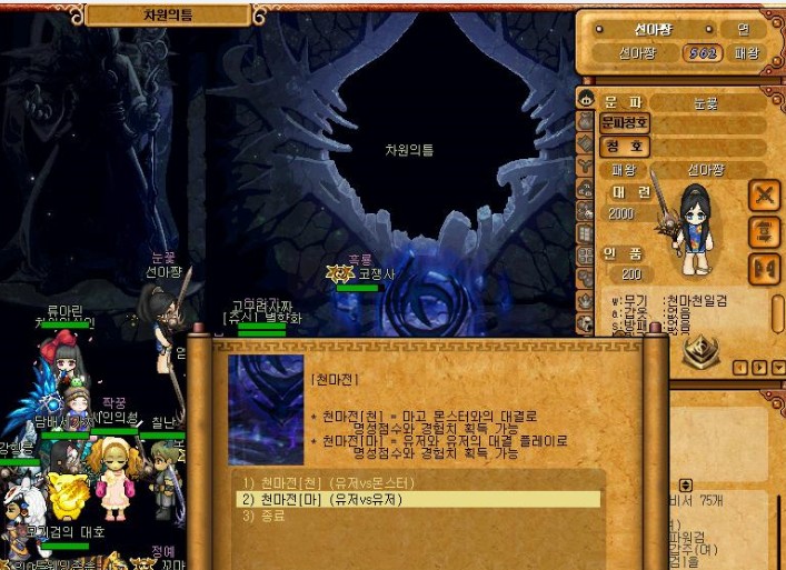 (천마전을 할줄 아는 사람은 자신의 캐릭3개를 동시에 집어넣고, 천마전을 클리어하면