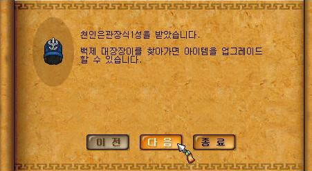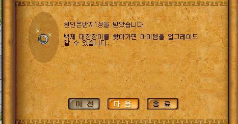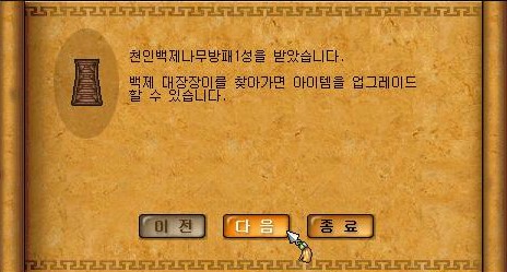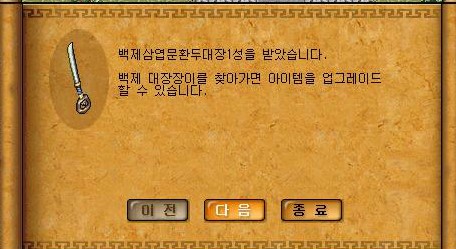 퀘스트를 받는동시에 백제무기가 템창에 들어옵니당