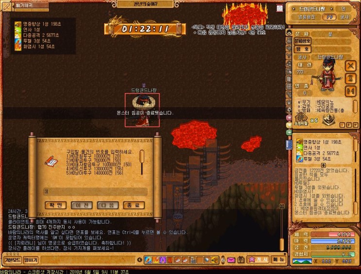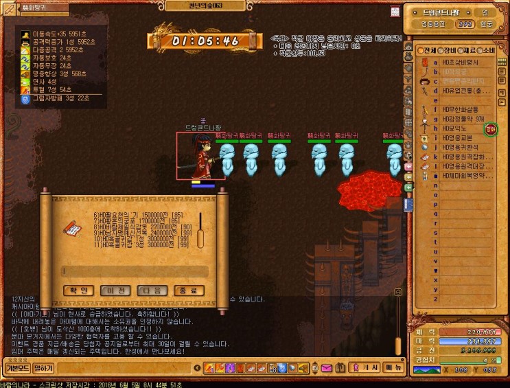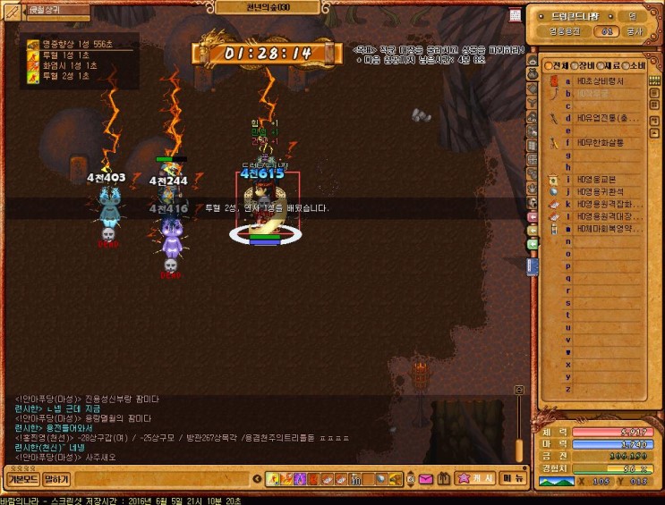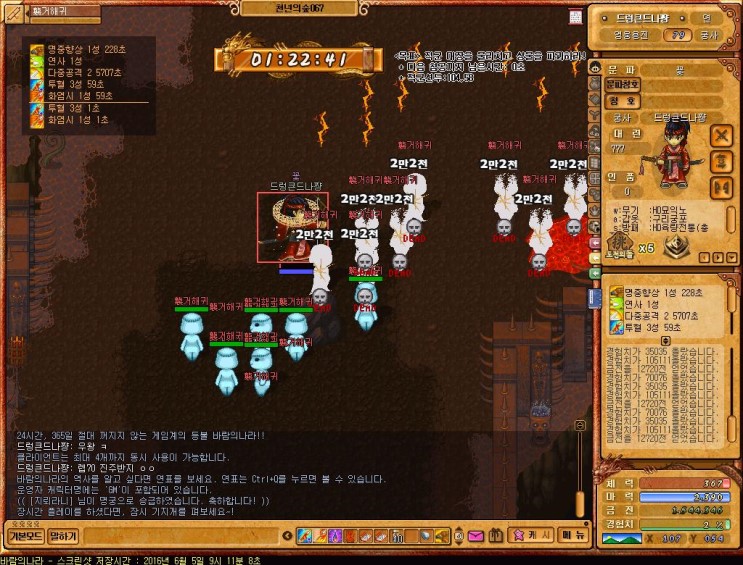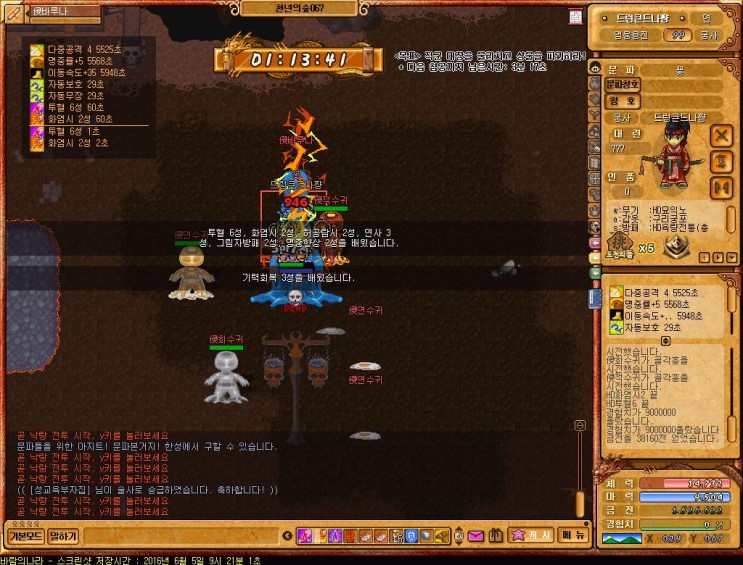 레벨60때 "연사"라는 마법이 나오는데 댐지뻥튀기가 가능한마법이니까 반드시 키고 사냥하도록 하자