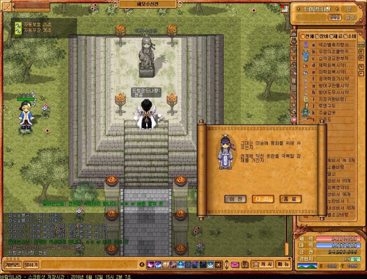 (참고로 금천군퀘중이라면 절대 경험치 팔지말고 백두촌퀘스트NPC를 만나러가야한다