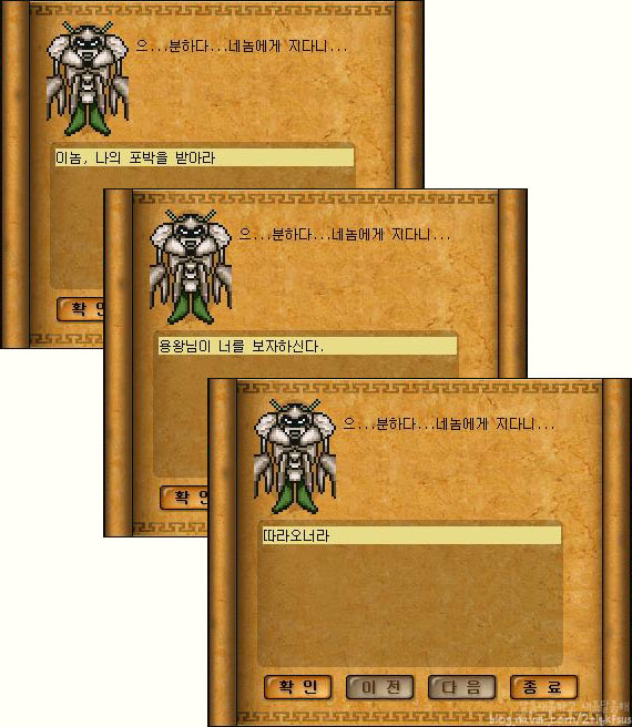 바람의나라 진원관퀘스트 (보상:해골목걸이) 29 2017 04.06 바람의나라 용궁정화 퀘스트 (보상템: 정화의방패) 157 2017 04.06 바람의나라 용궁퀘스트 8. 청의태자 (보상: 용왕의투구) 29 2017 04.06 바람의나라 용궁퀘스트 7. 해파리장군 (보상: 용왕의반지) 18 2017 04.06 바람의나라 용궁퀘스트 6. 상어장군 26 2017 04.06