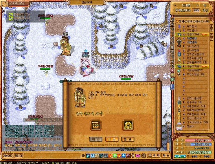 바람의나라 금천군입장퀘스트 완료