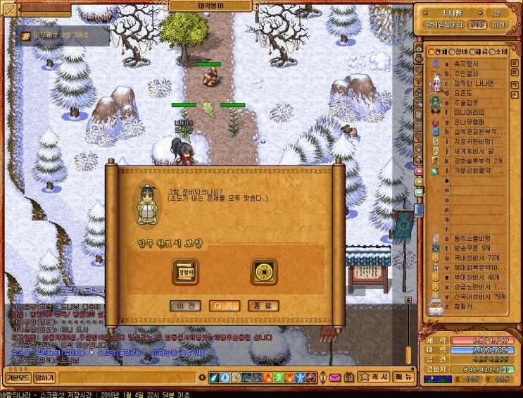 자 그러면 퀘스트를 바람의나라 금천군퀘스트를 시작하도록 합시다