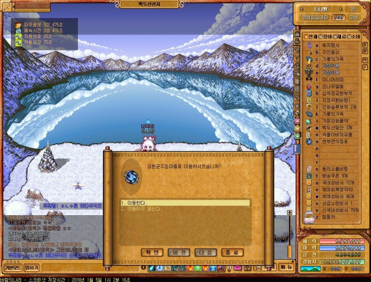 29번글 천부연퀘스트2 (안깨도 됨, 28-> 30번글로 바로 넘어와도 상관은없지만 백두산관광하는것도 좋다고생각함)
