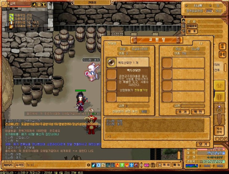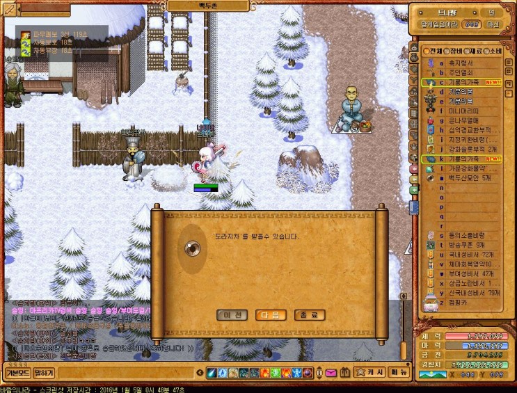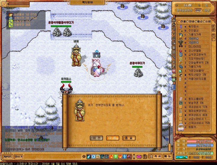 바람의나라 금천군퀘스트 진행하고있다고하니까 초급마스터리님이 백두산묘안 1개를 훈지해주심