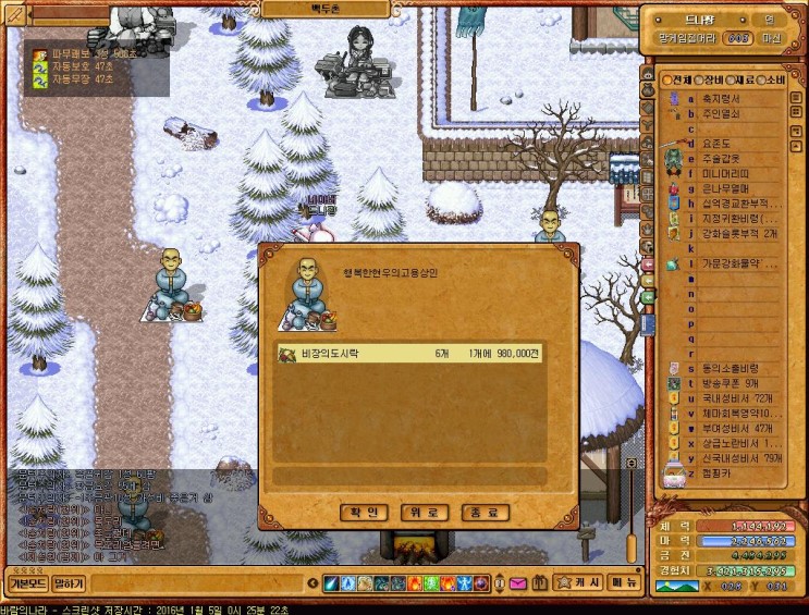 이놈들을 잡아서 "백두산의영석"을 구해오자, 그냥 고용상인검색하거나 백두촌의 유저들 고용상인뒤져봐도 싼가격에 판매하고있음 ㅇㅋ