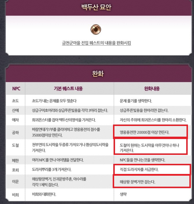 난이도가 지1랄맞다는건 넥슨도 아는지 백두산 묘안을 사용하면