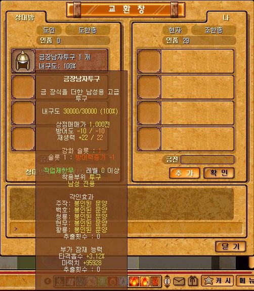 ...는 웬만하면 그냥 일반성 갑옷점/포목상에서 파는 장비들을 사서 입는것이 제일 좋습니다.