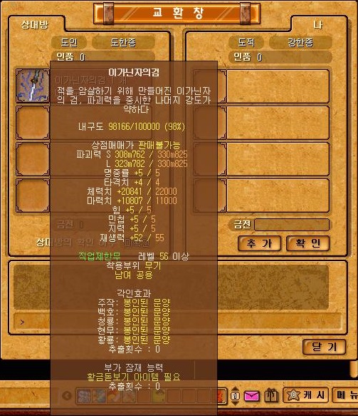 비격수(주술사,도사)들도 56을 달성하자마자 바로 착용할 정도로 인기있는 아이템입니다.