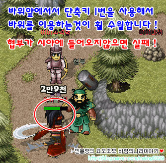 그리고 훨 수월하게 클리어 하시려면 여기저기 보이는 바위앞에가서 단축키 1번을 누르시면되요