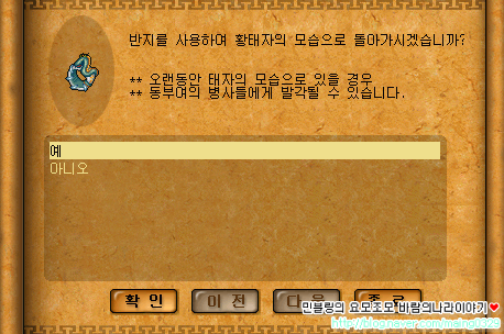 변신술의주문서 와 황태자의반지 가 있습니다 !